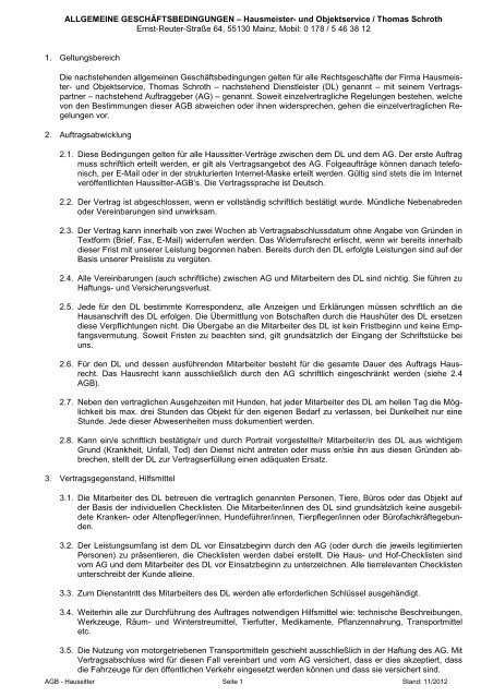 Agb S Fur Housesitting Hausmeister Und Objektservice