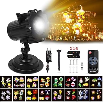 A Angg Christmas Lights Projector Led Lamp Landscape Projection Lamp Wireless Remote Outdoor Indoor Xmas Snow Theme Party Yard Garden Decorations 16 Slides Amazon Co Uk Lighting