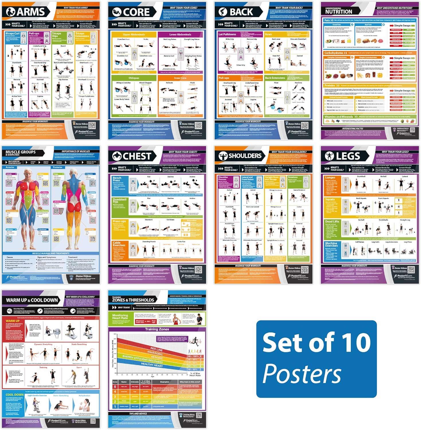 Amazon Com Fitness Training Essentials Set Of 10 Gym Workout Posters Laminated Exercise Posters Size 33 X 23 5 Video Tutorials Improves Personal Fitness Sports Outdoors